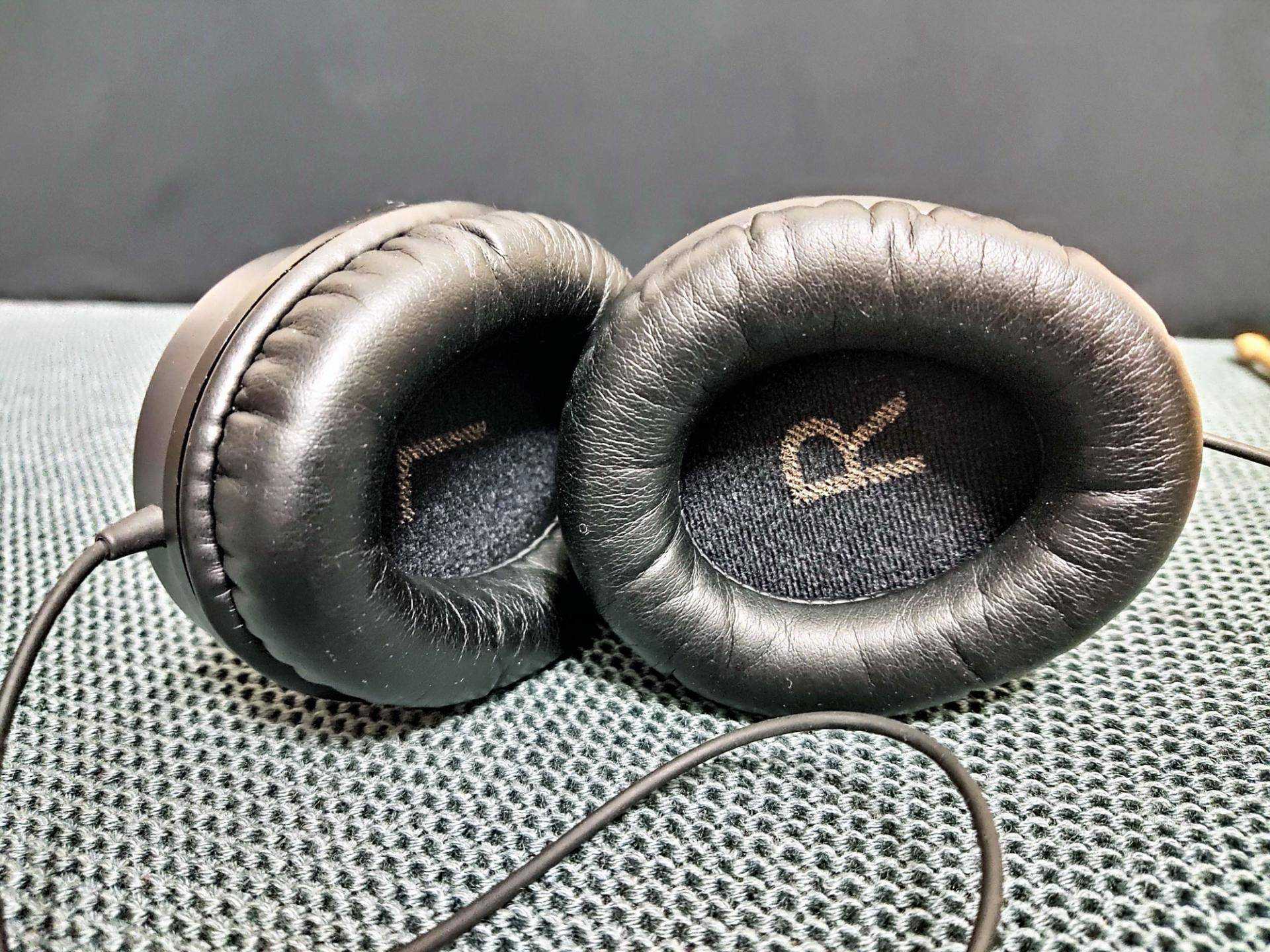 Амбушюры овальной формы обшиты искусственной кожей. Мягкий наполнитель легко изменяет форму, но также легко её восстанавливает. Внутри каждого наушника размещено обозначение «L» и «R». Не трудно догадаться, что это означает.