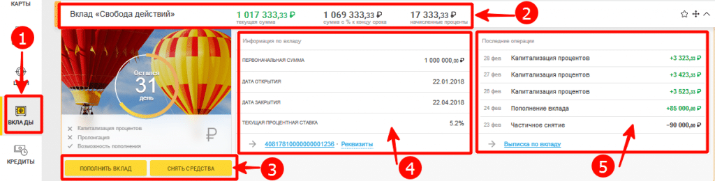 Создание и обслуживание депозитов в персональном кабинете – это действительно удобно. Пополнить вклад или снять средства, получить детализацию счета и уточнить любые детали по депозиту – все эти функции доступны в онлайн-сервисе. Для обзора депозитов:
