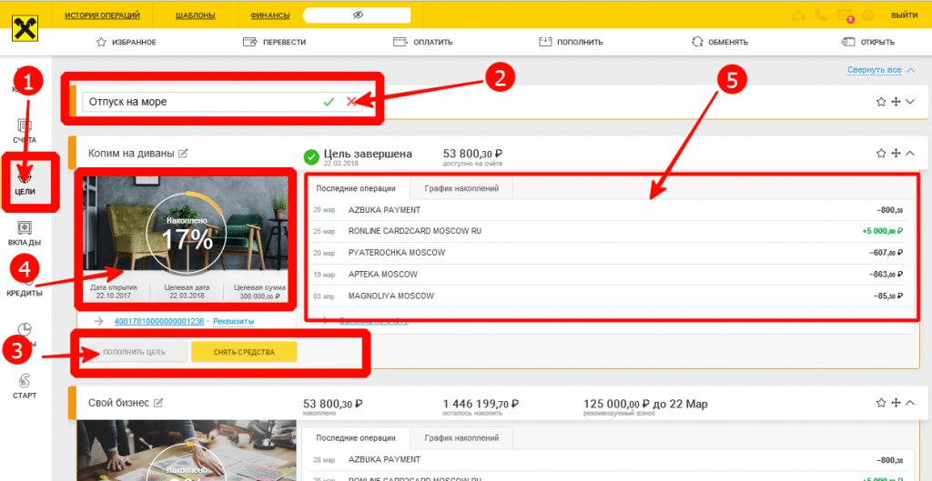 Если Вы планируете крупную покупку, то онлайн-банкинг будет полезен и в этом. Специальный раздел веб-банкинга поможет накопить средства на любые цели. Человек самостоятельно создаёт накопительный кошелёк, на счёт которого будет переводиться определённая денежная сумма. Для создания цепи необходимо: