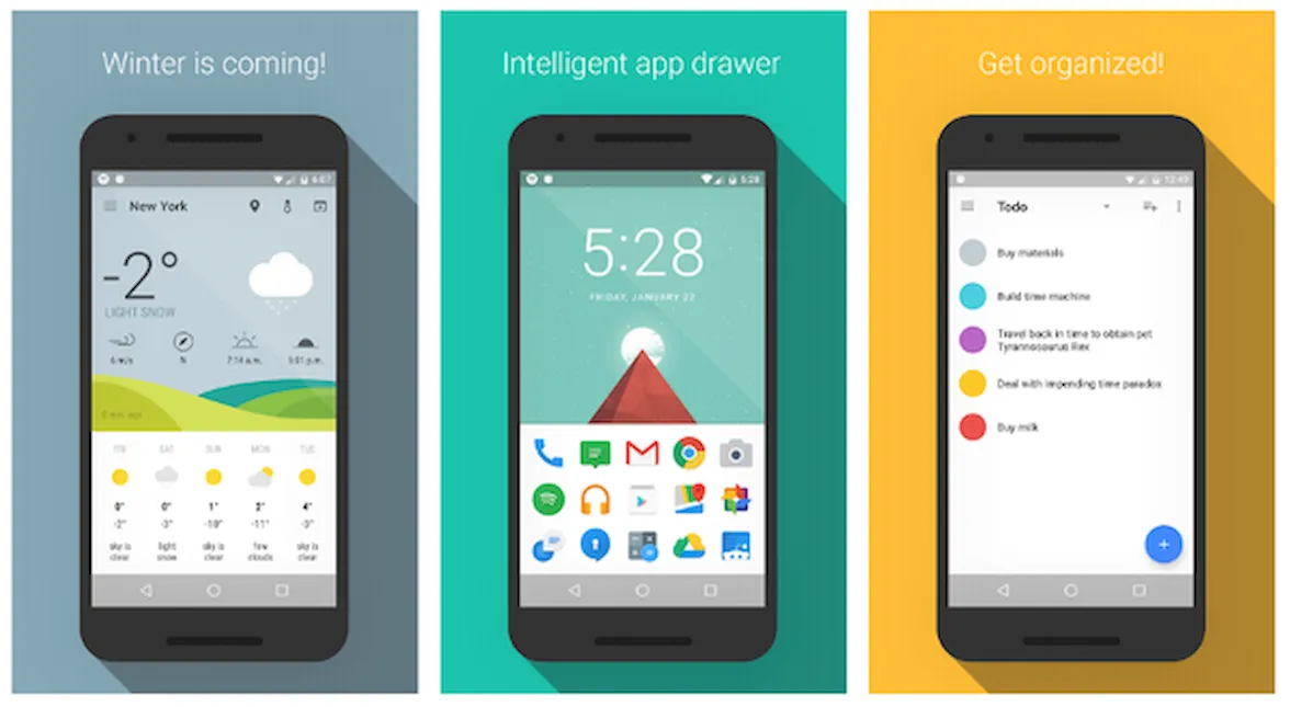 Ещё один популярный лончер на русском языке, который заменяет домашний экран, изменяет иконки, макеты, анимации и многое другое. Приложение совместило в себе баланс между невероятной производительностью и высокой настраиваемостью, при этом лоунчер прост в использовании и имеет множество дополнительных функций.