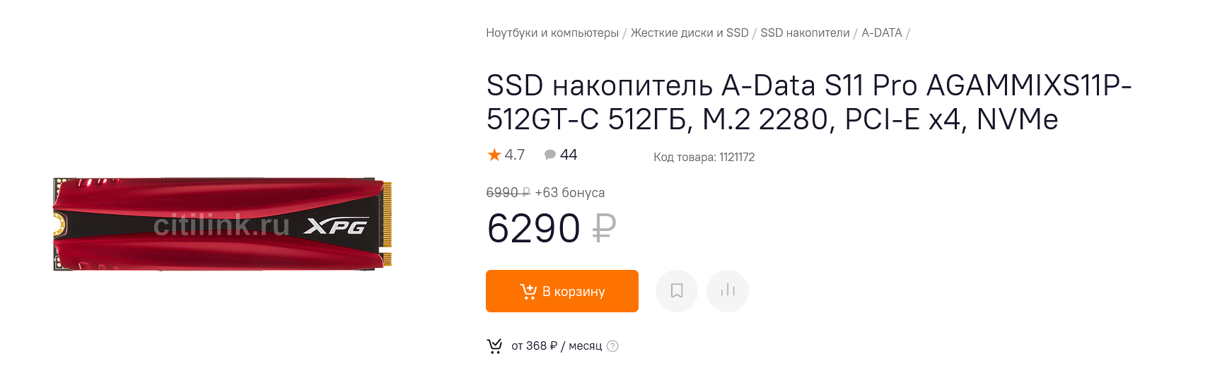 Однако, стоит помнить, что в некоторых случаях лучшим и, в принципе, единственным способом повысить производительность компьютера по-прежнему будут SSD-накопители с интерфейсом SATA3. Речь идёт о старых устройствах, которые не имеют разъем M.2 PCIe и для которых дополнительные инвестиции, например, в новую материнскую плату, не являются рентабельными. Вместе с тем, базовую модель носителя SSD SATA3 емкостью 120 ГБ можно сейчас приобрести за пару тысяч рублей.