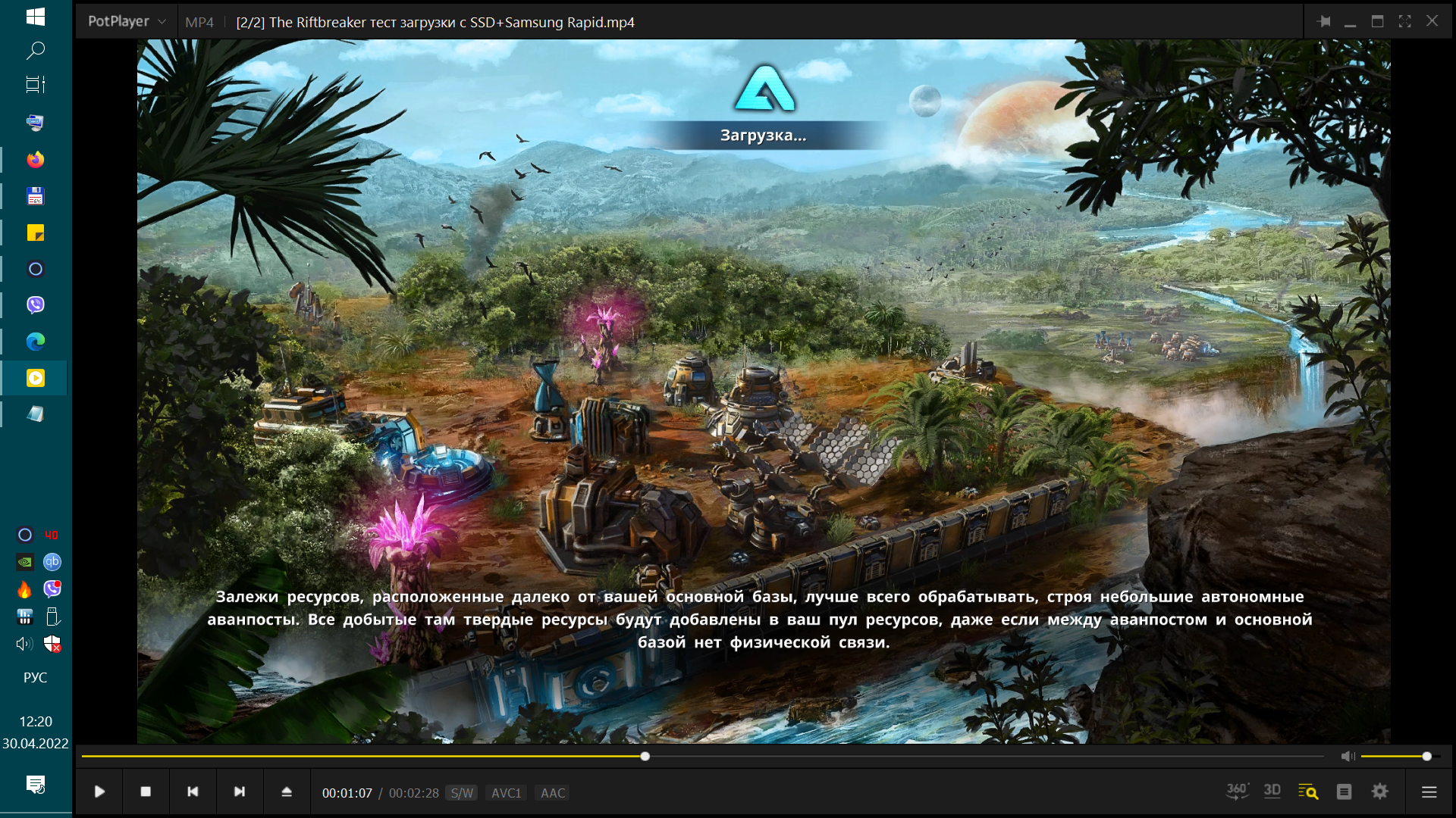 Поэтому, чтобы уловить разницу, которая могла быть совсем незначительной, я использовал долго загружающиеся игры: Anno 1800 и The Riftbreaker. В игре Anno 1800 при значительной застройке островов загрузка становится все длиннее и в моем примере дошла до одной минуты. А игра The Riftbreaker отличается крайней неоптимизированностью и умудряется загружается две минуты и более!
