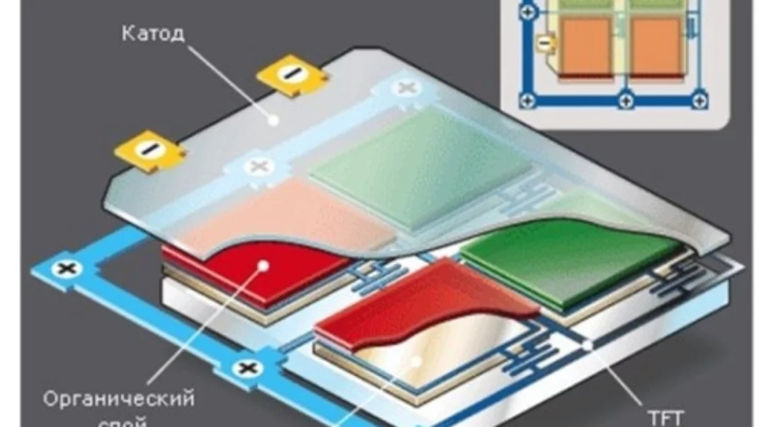 Технология AMOLED, аббревиатура от Active Matrix Organic Light-Emitting Diode, в которой используются органические материалы, излучающие свет при подаче электричества
