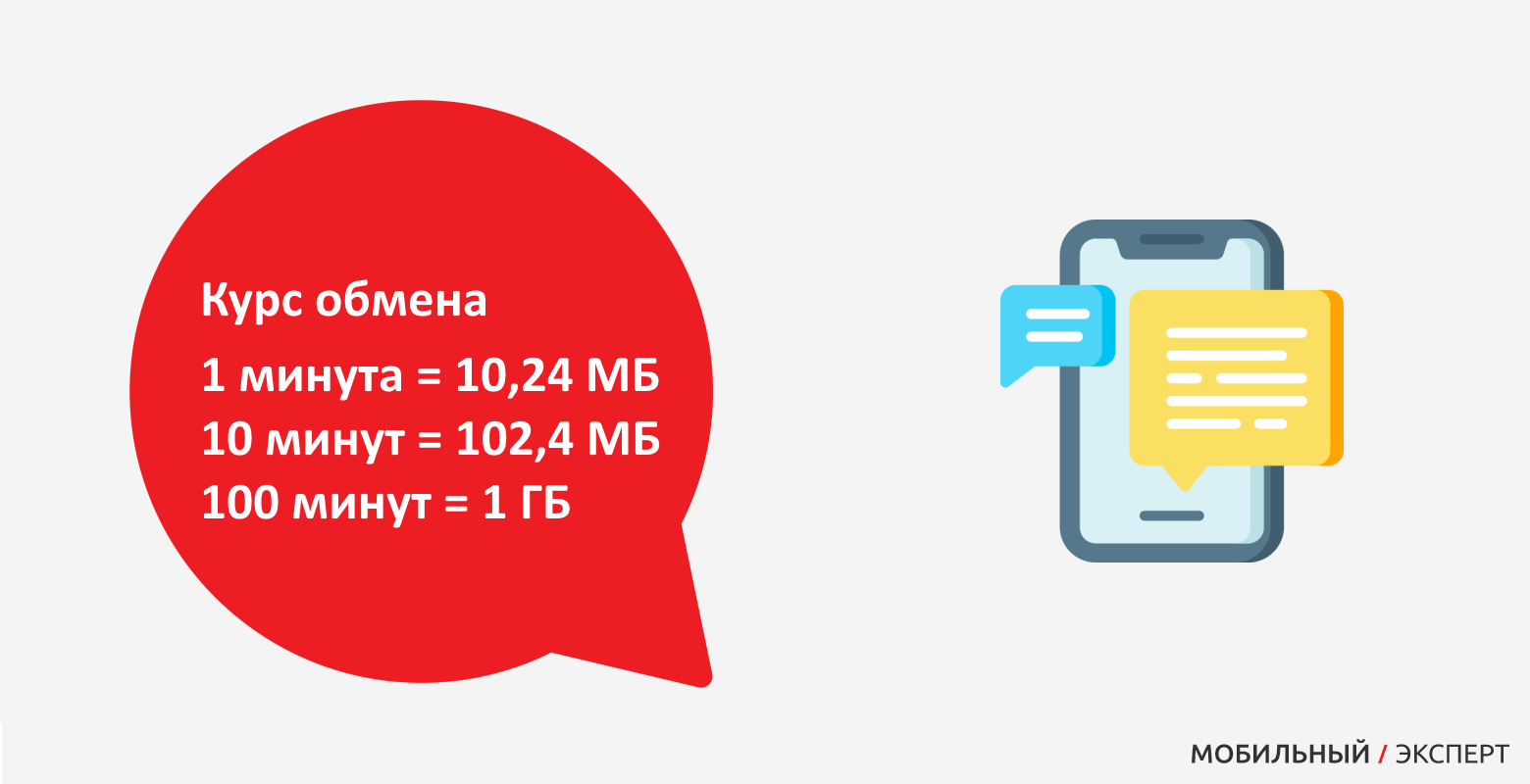 Чтобы неиспользованное время не пропадало, а клиенты не тратили лишние деньги на дополнительный трафик, оператор и создал возможность заменить минуты на мегабайты интернета. Пользователь может использовать для обмена любые из них: