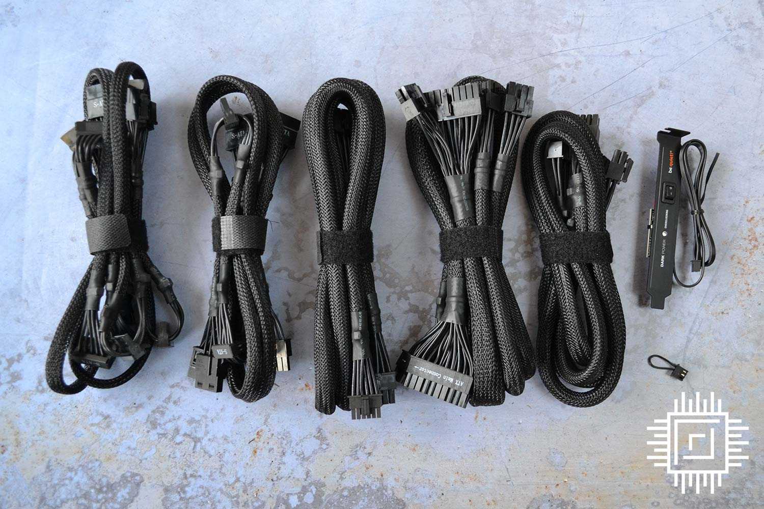 Важно отметить, что в комплекте с блоком питания идут кабели для подключения периферии. Все они имеют внешнюю оплетку, а поэтому довольно-таки качественные