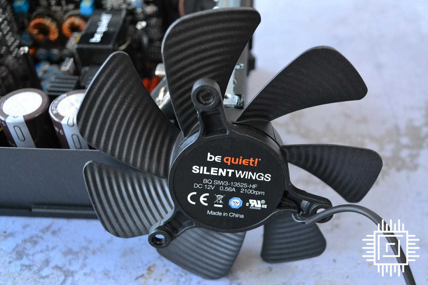 За активное охлаждение отвечает семилопастный вентилятор Silent Wings BQ SIW3-13525-HF на основе гидродинамического подшипника и с шестиполюсным моторчиком. Максимальные обороты — 1800 rpm.