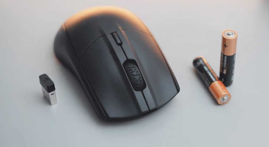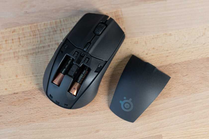 Недостаток с отсутствием проводного подключения нивелируется питанием от двух мизинчиковых батареек типа ААА с моментальной заменой. При использовании аккумуляторов подобного формата следует держать вторую пару на смену. Мышь работает и от одного элемента питания, это можно использовать для снижения массы до 96 граммов. Время автономной работы может достигать 400 часов при работе со сниженной частотой опроса без подсветки в высокоэффективном режиме. Это очень внушительная цифра для относительно лёгкой геймерской мышки, актуальная для качественных батареек, вроде комплектных Duracell.