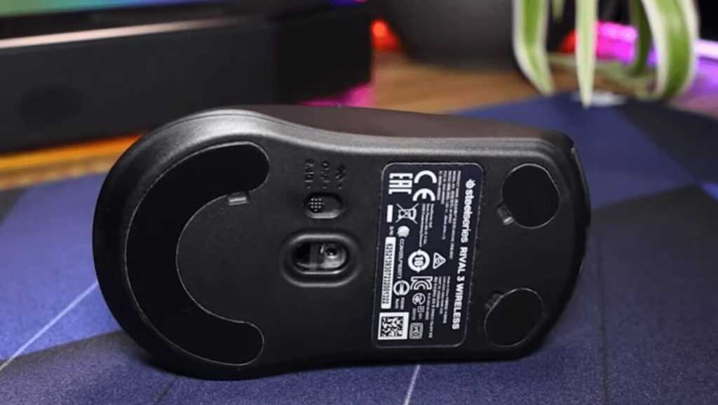 At the back is the switch to shift between modes (Off,2.4Hz, Bluetooth). The three large PTFE at the base help with smooth, gliding movement. Overall, the construction is great and the Rival 3 Wireless is compact yet stylish.