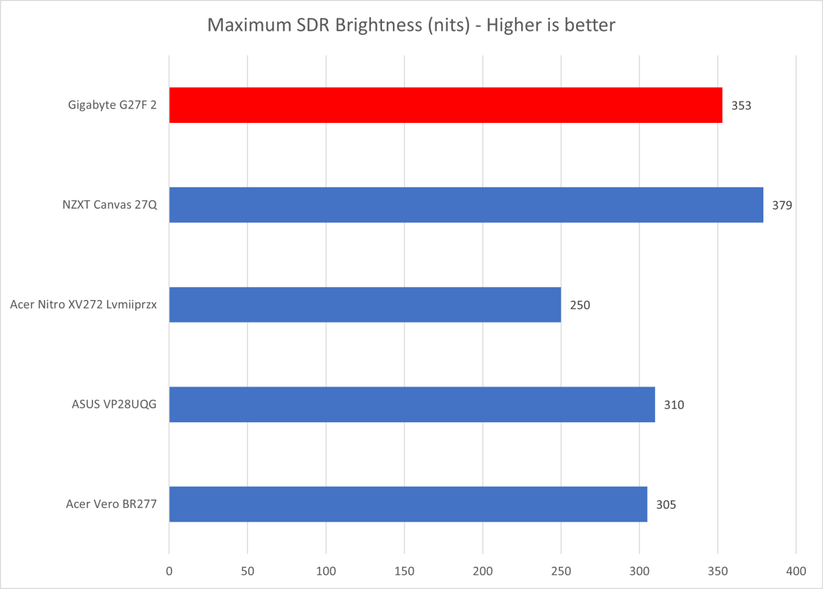 The G27F 2’s price offers an excuse. This is an inexpensive monitor for its category. You’ll see better results from alternatives like the Acer Nitro XV272, but that monitor has an MSRP that’s $50 higher. The Gigabyte G27F 2 is acceptable if you can’t stretch your budget that far.