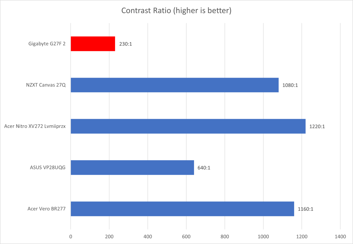 The Gigabyte G27F 2 has glorious coloration efficiency for a funds monitor. It’s additionally vivid, making it appropriate for practically any room. The distinction ratio is an enormous challenge, nonetheless, sapping the monitor’s picture of depth and vibrancy.