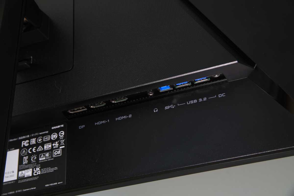 The KVM switch on the back of the GIGABYTE M27F-A gaming monitor