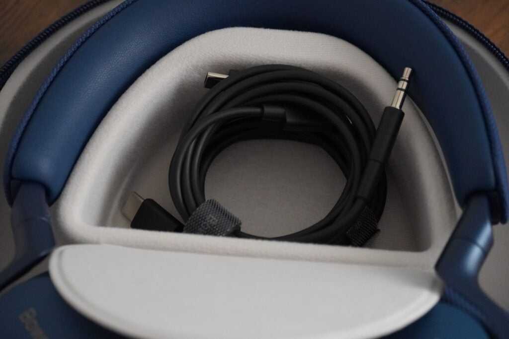 The B&W Px7 S2’s hardshell traveling case has a compartment for storing your cables. A USB-C charging cable is included, along with a USB-C-to-3.5mm audio cable.