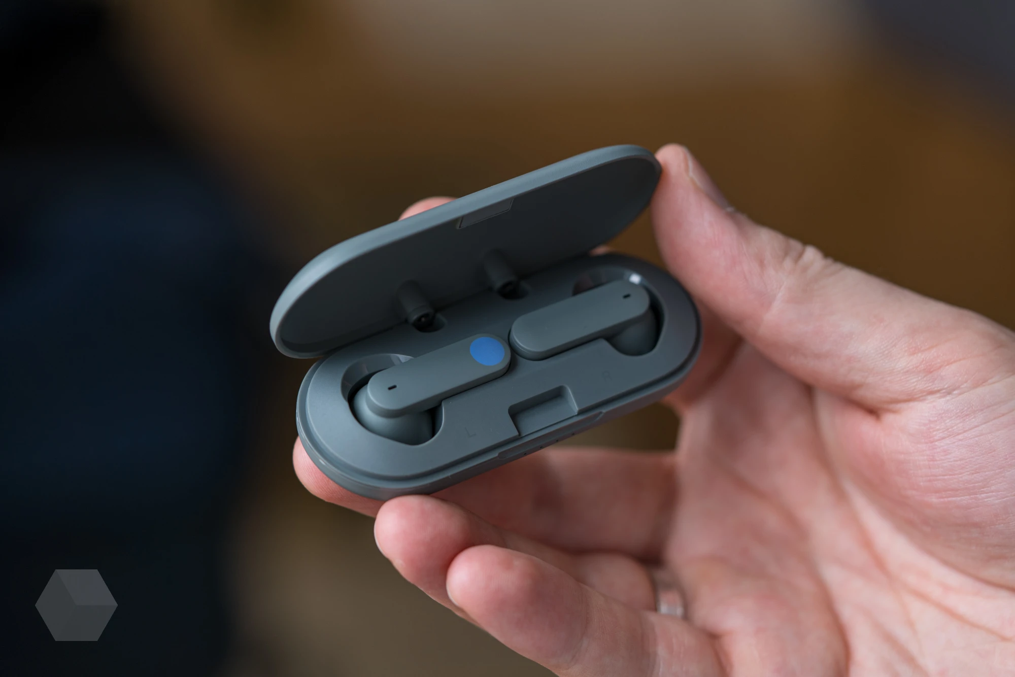 Футляр в руках держать хочется. Крепкий, холодный, абсолютно отсутствует любой люфт. Захлопывается приятно и мощно. Когда закрываешь, рядом с выемкой для открытия загораются 4 светодиода, сигнализирующие уровень заряда аккумулятора. При зарядке наушников внутри горят только крайние светодиоды.