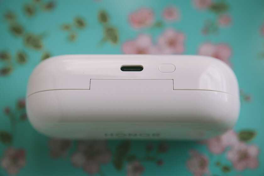 На нижней стороне кейса имеется разъём USB Type C. С его помощью бокс подзаряжается. Здесь же есть кнопка сопряжения и сброса.