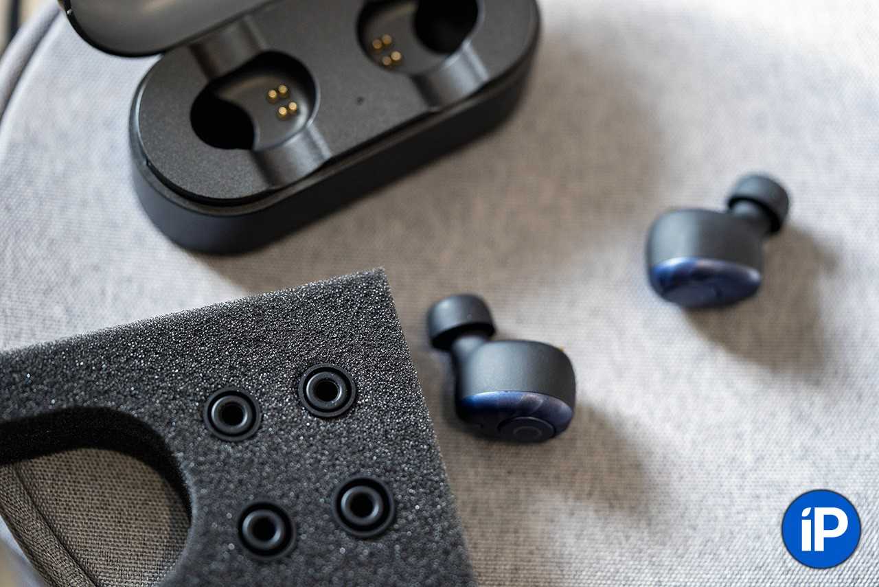 Кроме кейса и самих наушников в комплект поставки входят зарядный проводок microUSB и 3 комплекта амбюшур.
