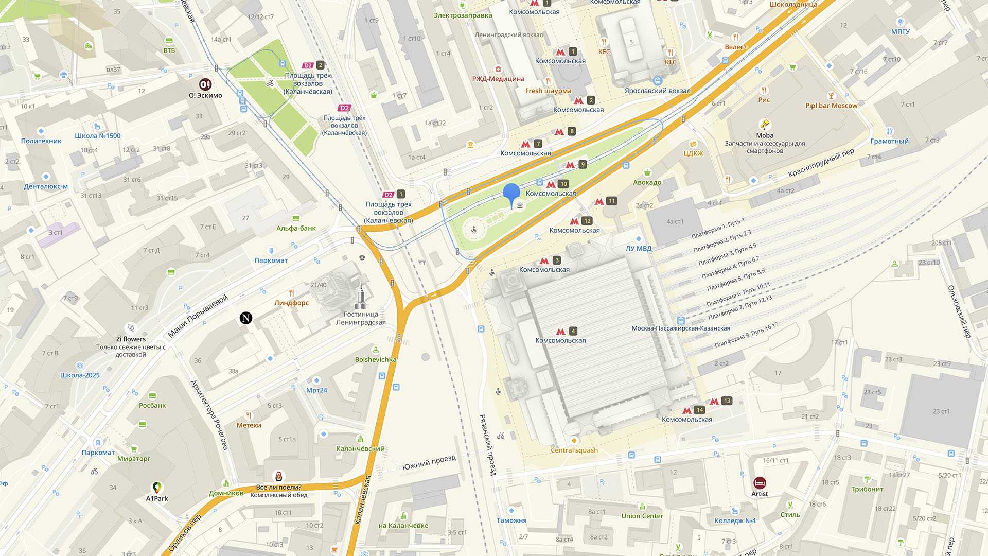 Открыл карту, чтобы посмотреть, в какие вагоны мне лучше всего стремиться, чтобы доехать до нужной точки. Однако тут возникла определённая сложность: смартфон думал, что я на Казанском вокзале. Это вот тут: