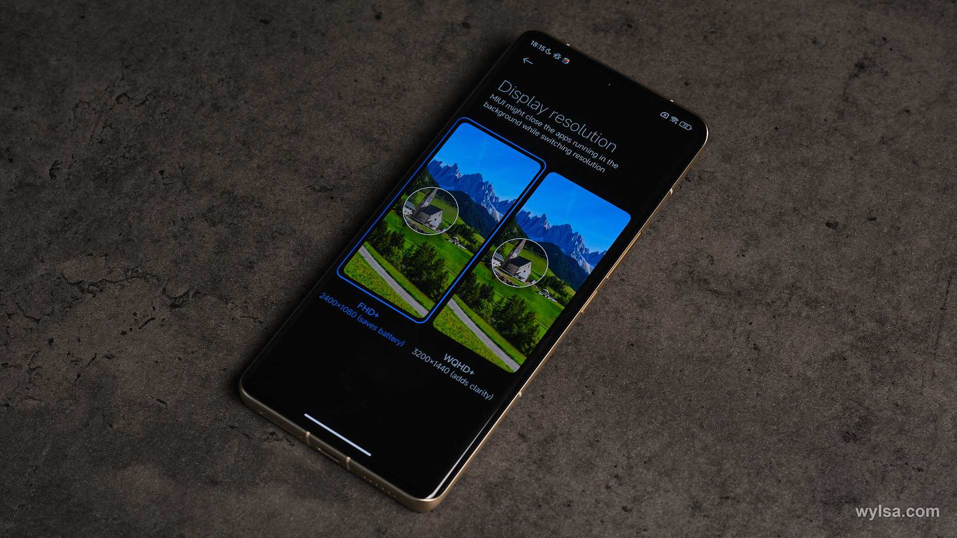 Пользователю на выбор предоставляно два разрешения экрана: 2400 × 1080 и 3200 × 1440 точек. Либо я не зрячий, либо разницы действительно нет. Поэтому я выбрал меньшее разрешение.