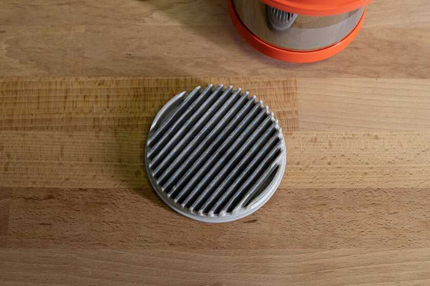 За сепаратором находится угольный воздушный фильтр, препятствующий обратному выбрасыванию пыли из мусоросборника. Второй воздушный фильтр находится под верхней пластиковой крышкой. Эффективность радует, пыль от Roidmi Zero Z1 Air не летит, характерного запаха пылесоса после уборки нет.