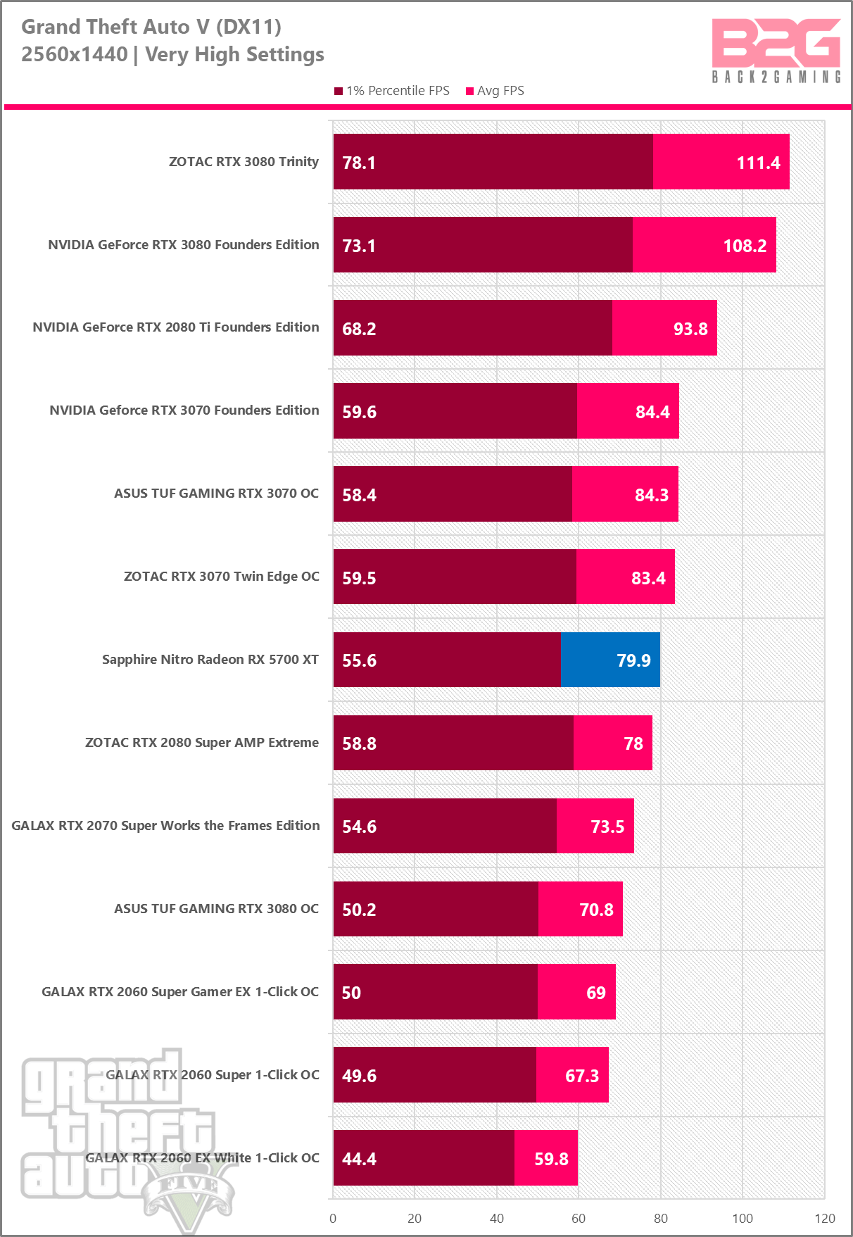 Благодаря довольно эффективному кулеру карта никогда не достигает температуры выше 70 ° C, а в режиме производительности генерирует слышимые, но терпимые 36 дБА. Карта также может похвастаться довольно хорошим запасом по разгону, так как тактовую частоту ее ядра можно легко поднять до 2800 МГц. В целом, это очень хорошая карта, которая может предложить отличную отдачу, если у вас достаточно денег, чтобы купить ее.