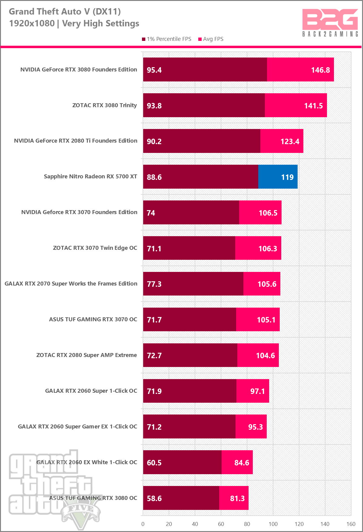 The fifth and most successful installment to date in the highly controversial Grand Theft Auto series brings a graphical overhaul to the PC version of GTA V which many have lauded as a superior approach in porting a console game to PC. Featuring large areas and detailing, GTA V is a highly challenging application in terms of scene complexity.