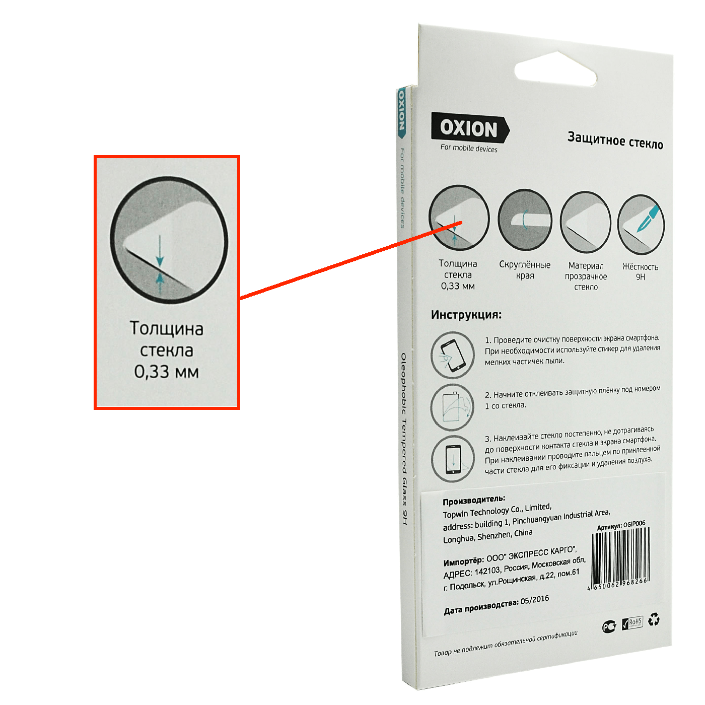 Производители указывают данную характеристику на упаковке к защитному стеклу или пленке: