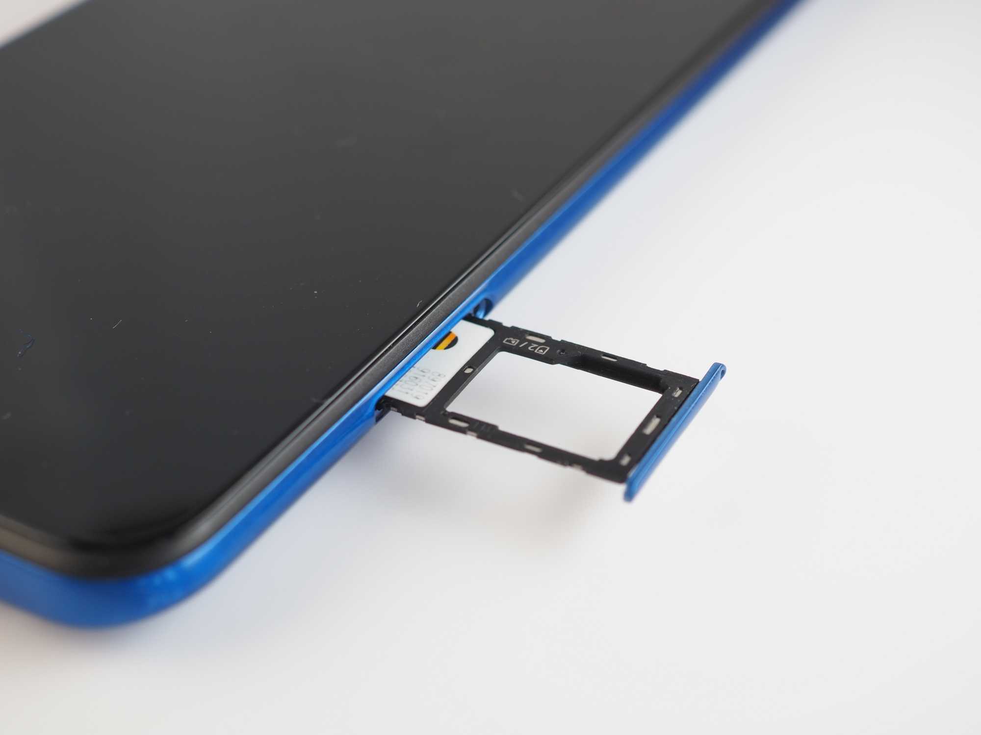 Гибридный разъем для карточек рассчитан на две карты Nano-SIM и карту памяти microSD. Поддерживается горячая замена карт.