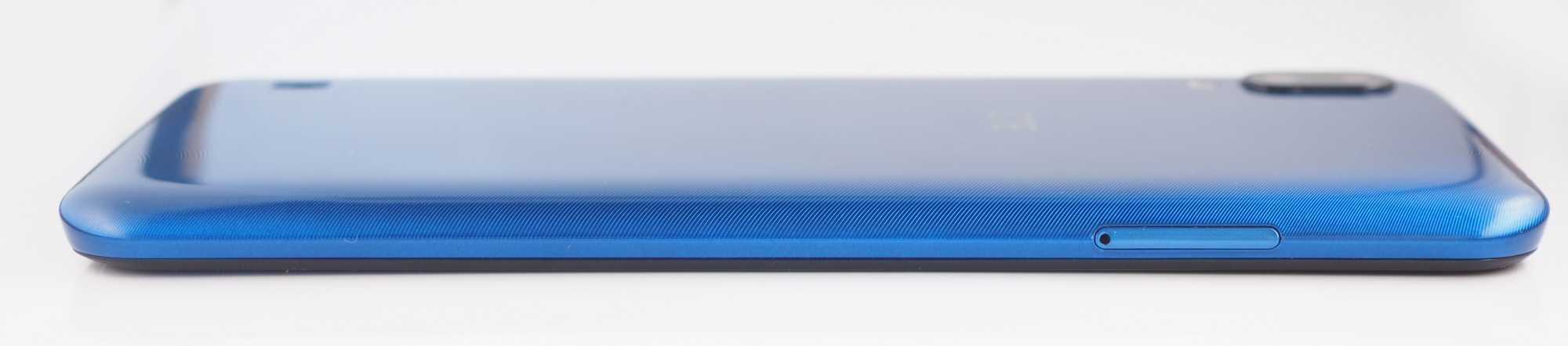 Корпус ZTE A3 2020 выполнен из пластика. Крышка достаточно плотная, не прогибается при нажатии, выкрашена в голубой хром.
