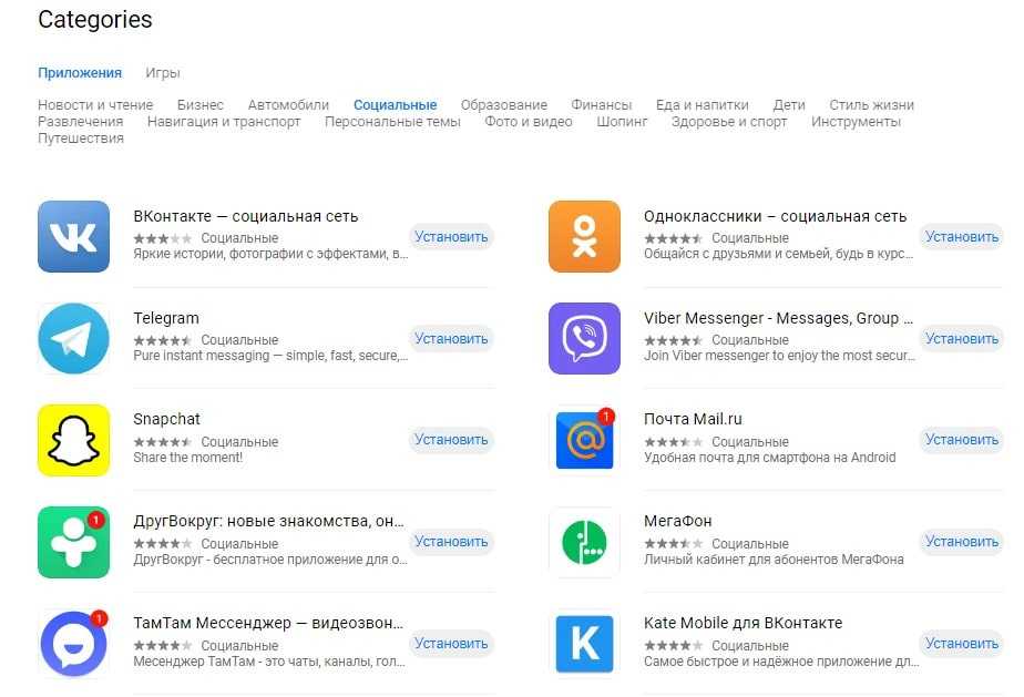 Доступные мессенджеры и приложения для сойсетей из AppGallery: – Telegram – один из самых популярных мессенджеров в мире. Установить его можно бесплатно. Telegram обычно находится в топе приложений вкладки «Социальные». – Viber. Установив эту программу, владелец Хуавей сможет обмениваться со своими контактами не только текстовой информацией, но и файлами. – Snapchat – широкий функционал программы не ограничивается лишь обменом сообщений, это полноценная социальная сеть. – Соцсети для знакомств. В AppGallery есть все популярные сервисы для знакомств: Tinder, Badoo, Topface и др. – Также есть и популярная сейчас сеть для коротких видео TikTok.
