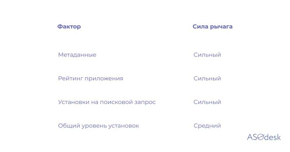 Мы не будем опираться на слухи и выдумки, обратим внимание только на те факторы ранжирования, на которые можно повлиять в краткосрочной перспективе.Факторы ранжирования в App Store и Google Play