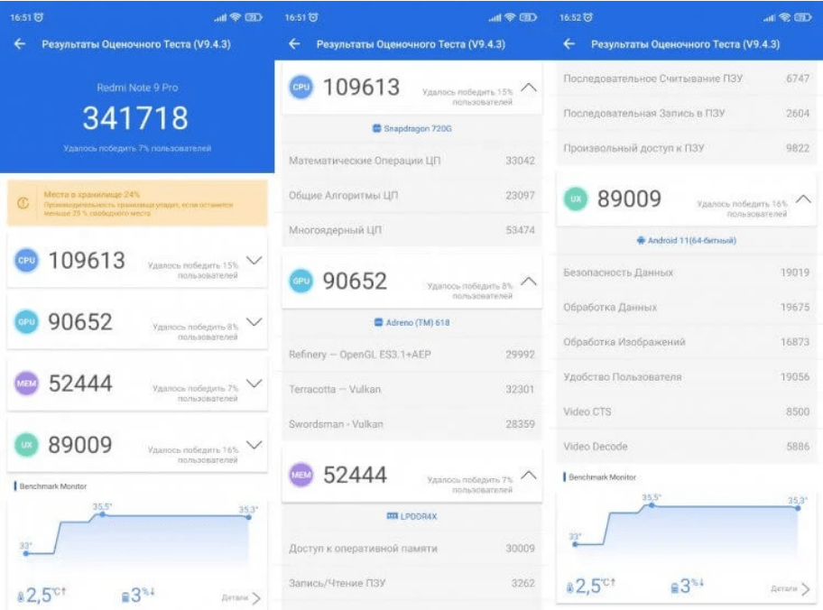 Большая продолжительность теста по сравнению с AnTuTu Benchmark является признаком снижения общей производительности.