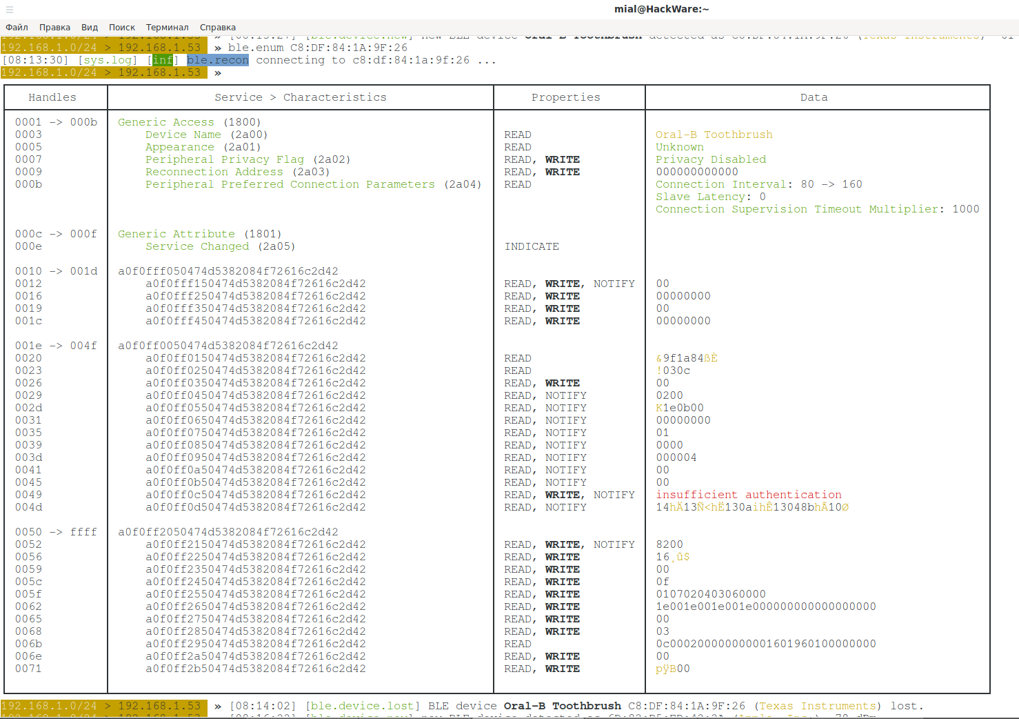 Имеется проблема в идентификации сервисов и характеристик. Для 16-битных сервисов и характеристик всё просто, ссылки на их значения даны выше. Что касается 128-битных сервисов и характеристик, то они у каждого производителя могут быть свои. То есть нужно приложит некоторые усилия, чтобы, к примеру, сопоставить что-то вроде d0611e78-bbb4-4591-a5f8-487910ae4366 с чем-то вроде Apple Continuity Service. Для сопоставления можно использовать как минимум два подхода: