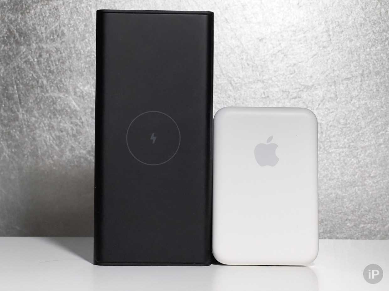 Чтобы ещё больше успокоить, почему габариты нормальны, вот сравнение с моим аккумулятором от Xiaomi на 10 000 мА·ч с функцией беспроводной зарядки.