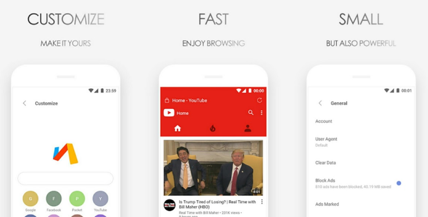 Список лучших браузеров 2019 года возглавляет Via Browser, он удовлетворит потребности подавляющего большинства пользователей смартфонов любого уровня. Приложение весит всего пол мегабайта, даже при установке большого количества дополнений оно не начнет тормозить. Via отлично оптимизирован и потребляет настолько мало оперативной памяти, насколько это возможно. После Chrome вы вздохнёте с облегчением, а затем начнёте настраивать всё и вся под свои нужды.