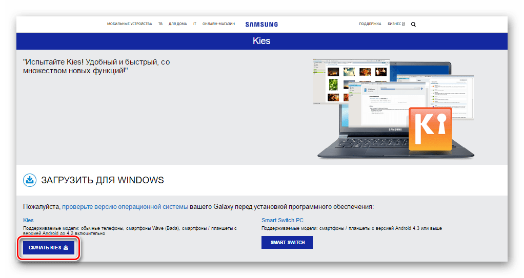 Для обеспечения взаимодействия Odin и устройства потребуется установка драйверов. К счастью, Samsung позаботился о своих пользователях и процесс установки обычно не вызывает никаких проблем. Единственным неудобством является тот факт, что драйвера входят в комплект поставки фирменного ПО Samsung для обслуживания мобильных устройств – Kies (для старых моделей) или Smart Switch (для новых моделей). Следует отметить, что при прошивке через Odin c одновременно установленным в системе Kies, могут возникнуть различные сбои и критические ошибки. Поэтому после установки драйверов Kies необходимо удалить.