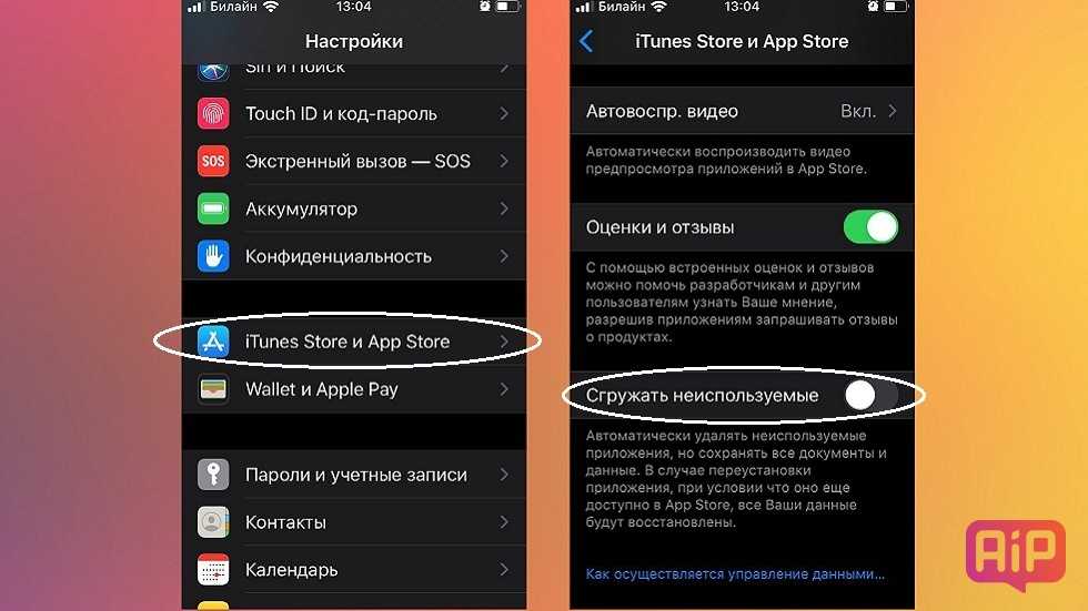 Функция «Сгружать неиспользуемые» тоже может навредить вам. Когда она включена, смартфон удаляет часть приложений, которыми вы давно не пользовались. Например, если вы скачали карты новых мест сильно заранее и долго в них не заходили, в самый неподходящий момент iPhone может от них избавиться. Возможно, придётся их в авральном режиме скачивать снова, и не факт, что рядом будет wi-fi в этот момент. «Настойки» → «iTunes Store и App Store»