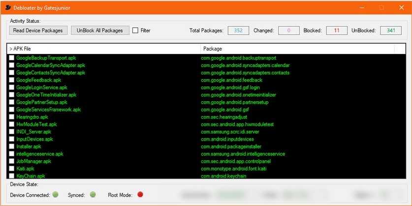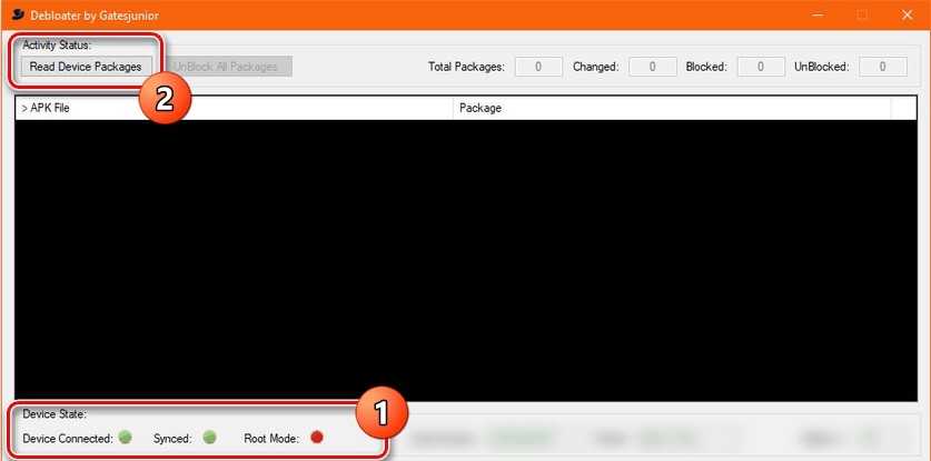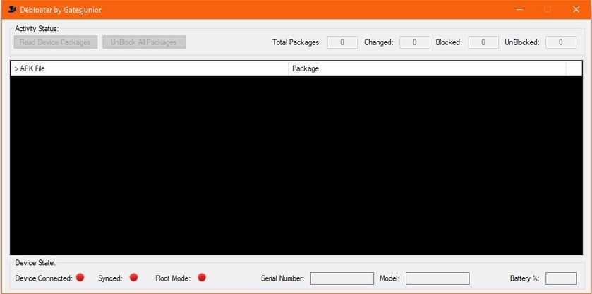 Установите пакет ADB на компьютер, а также программу Debloater.
