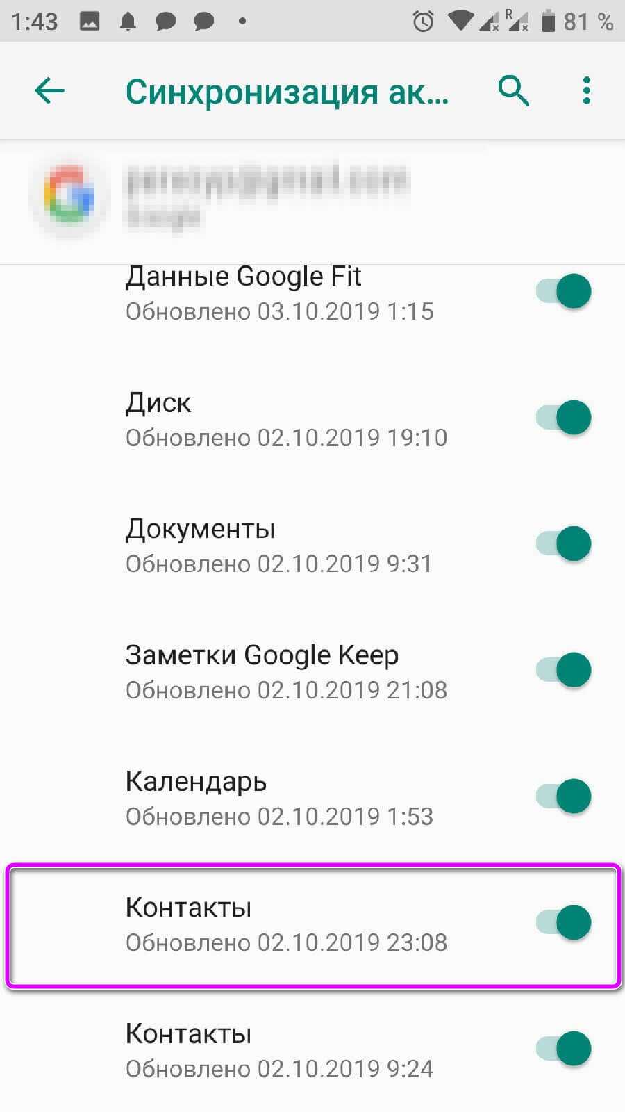 Как убрать синхронизацию контактов в то