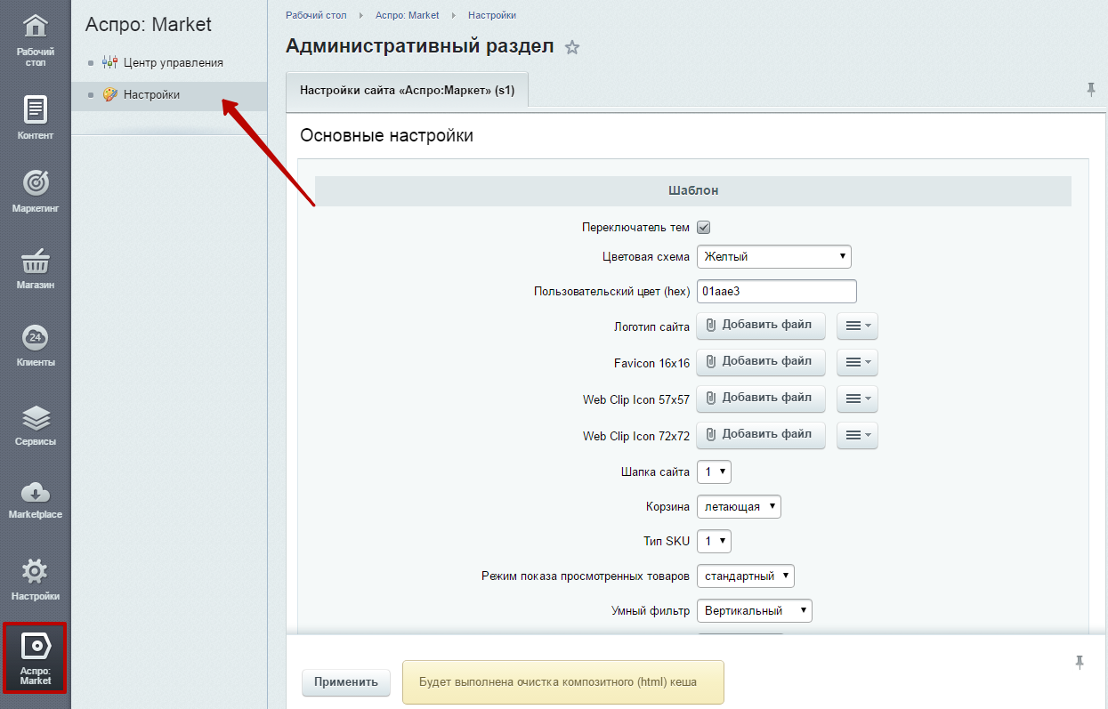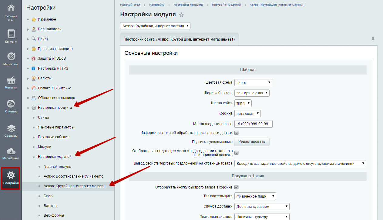 Если вы используете Аспро: Маркет, Аспро: Оптимус, Аспро: Корпоративный сайт современной компании, Аспро: Стройка, Аспро: Курорт или Аспро: Digital-компания, настройка будет находиться в Рабочий стол → %Название вашего решения Аспро% → Настройки.