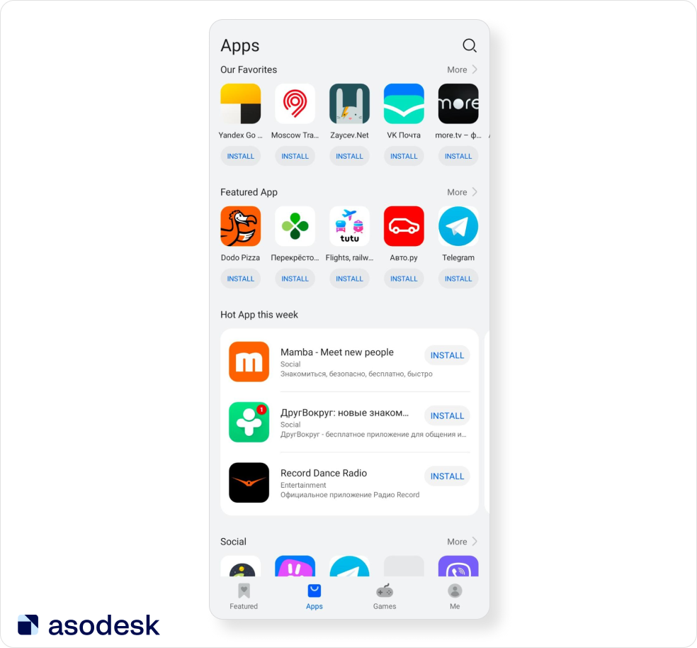 Важно отметить, что попадание в фичеринг возможно только через личные знакомства. Издатели приложений периодически спрашивают контакты редакторов в ASO-сообществах, таких как чат ASO&ASA Channel и ASO приветы в Telegram. . На сайте Huawei вы можете ознакомиться со списком доступных локалей для создания страниц приложения