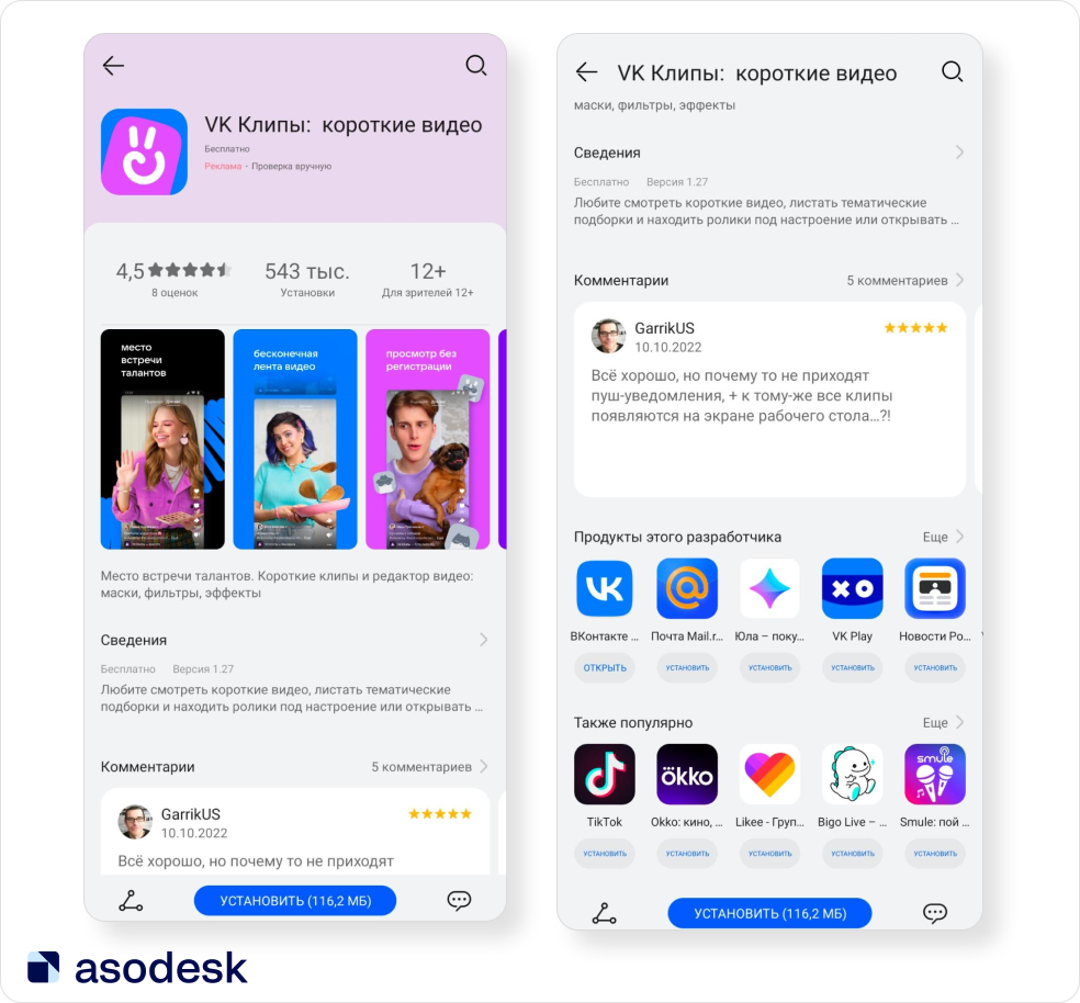 Страница приложения VK Clips в AppGallery