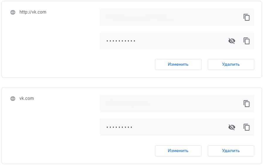 - Жмем на кнопку «Удалить» под всеми паролями к ВК.