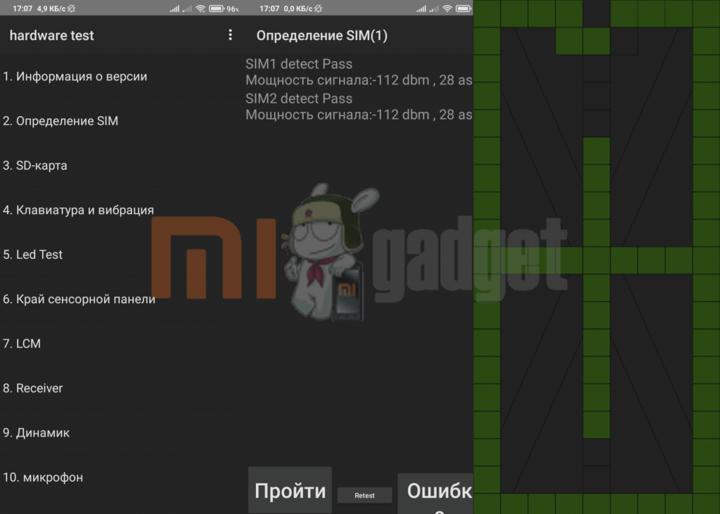- LCM. Под этим пунктом скрывается тест цветопередачи дисплея. Если во время проведения тестирования будут какие-то отклонения от нормы, то панель необходимо заменить;