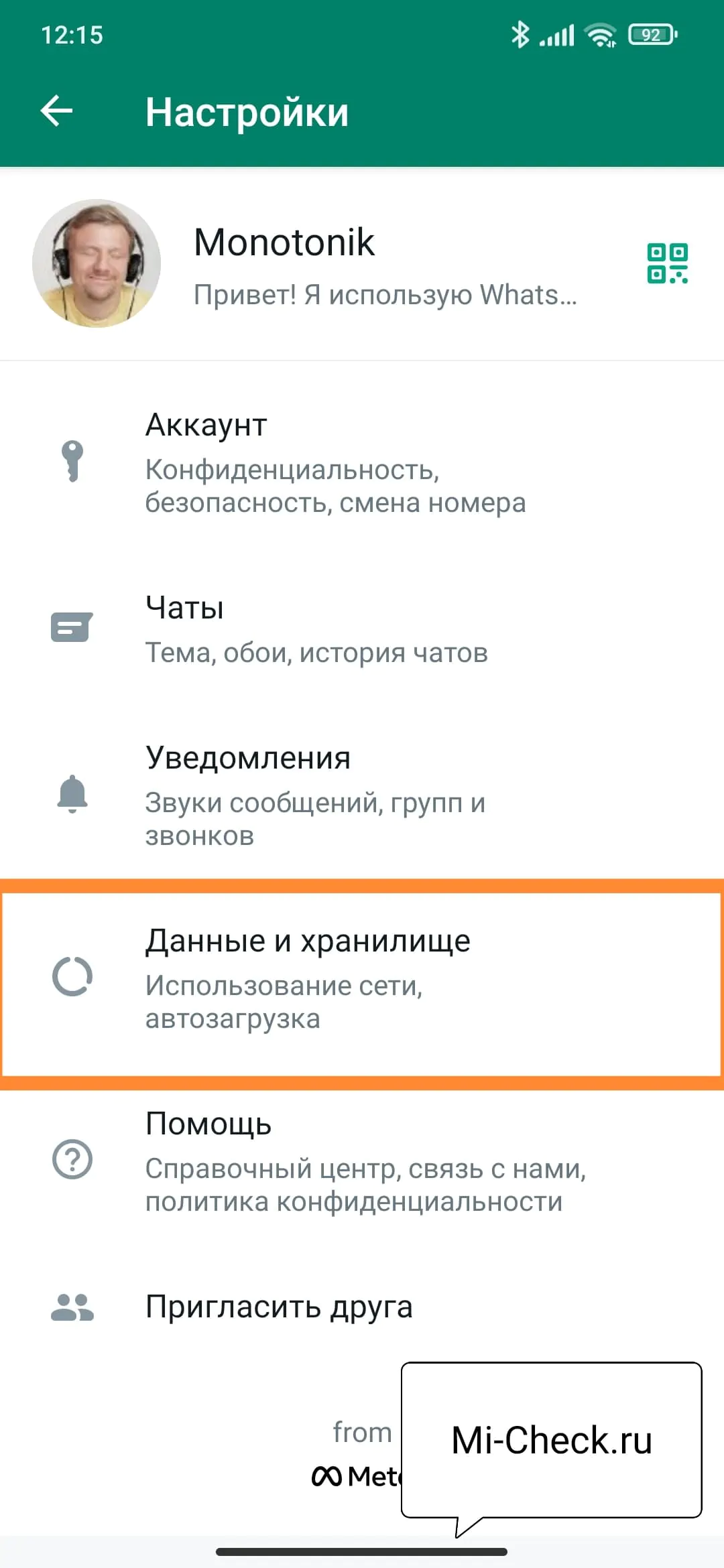 При включённой автозагрузке всех полученных медиафайлов обновление не принесёт желаемого результата. Все переданные собеседнику фото, видео и документы сохранятся в памяти его гаджета автоматически. Отключить функцию можно в разделе «Настройки», выбрав пункт «Данные и хранилище».