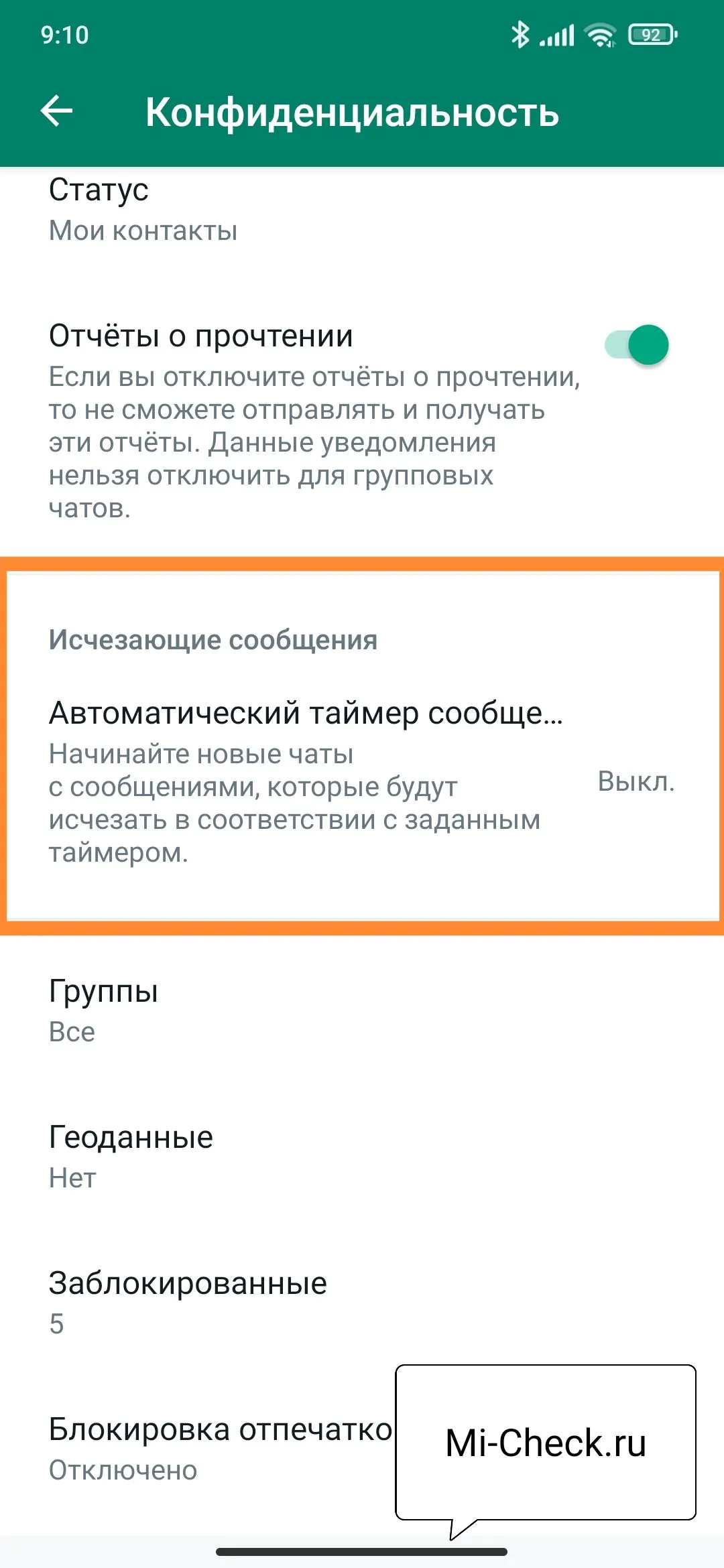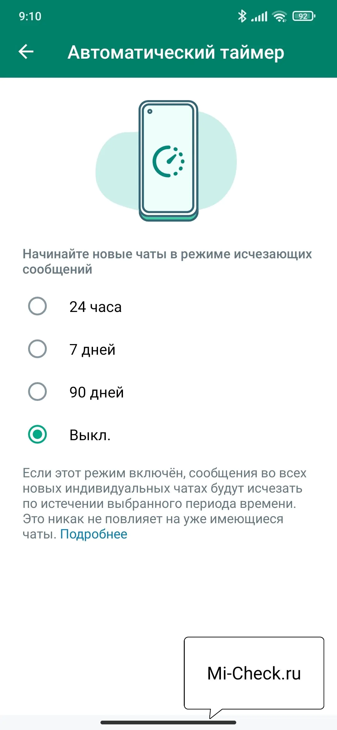 Это позволяет быстро отключить исчезающие сообщения или изменить таймер сообщений