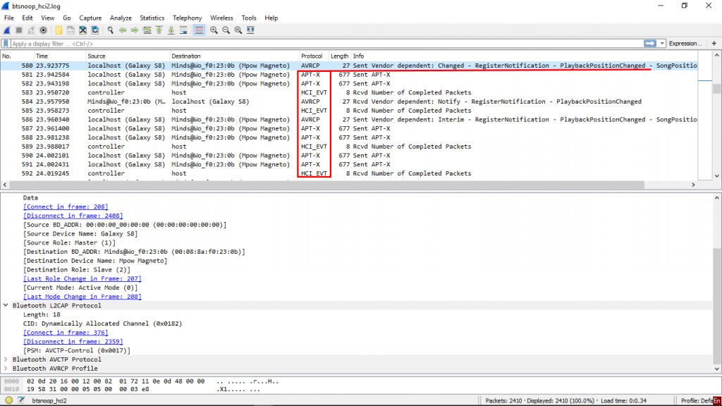 В итоге, телефон с наушниками договариваются об использовании кодека APTX Sent Command — SetConfiguration — APT-X