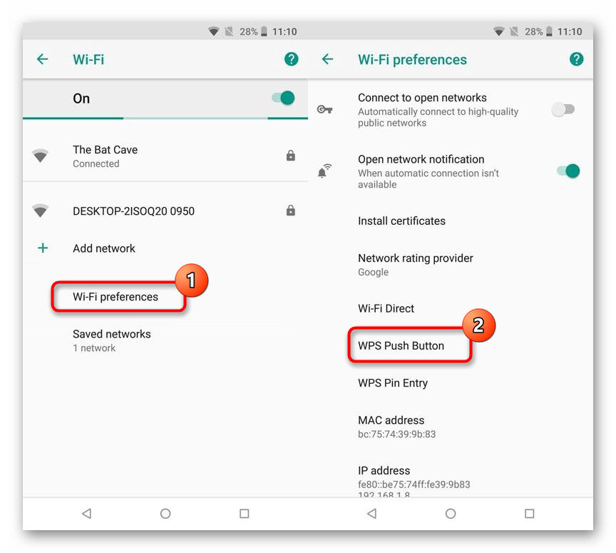 В некоторых версиях мобильных операционных систем технология WPS работает иначе, поэтому описанный выше метод не сработает. Тогда потребуется открыть настройки Wi-Fi, выбрать там раздел «Кнопка WPS», а затем нажать ее на маршрутизаторе и дождаться успешного подключения.