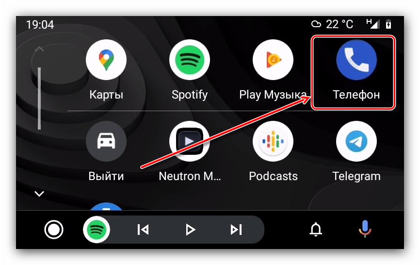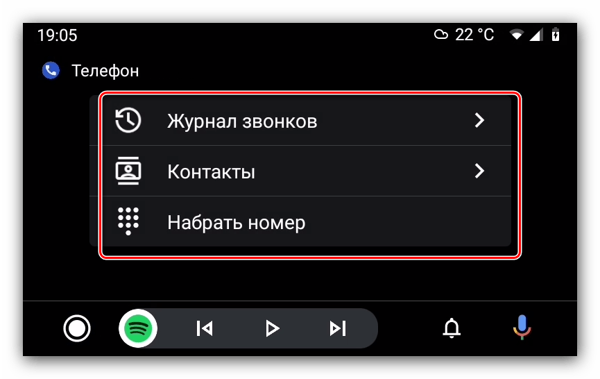 Совершение звонков и ответ на входящий вызов в оболочке Android Auto происходит так:
