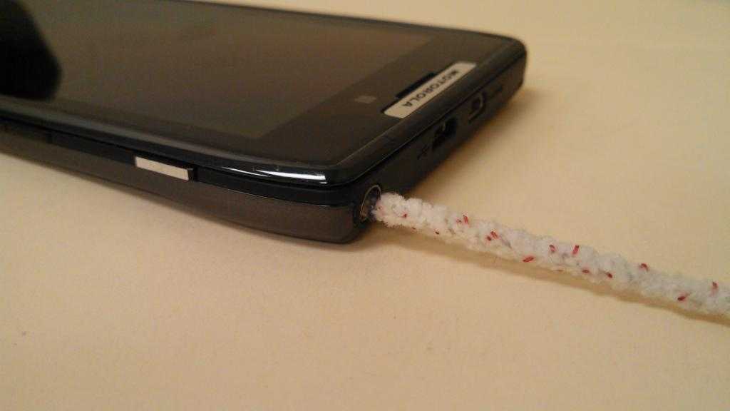 Обмотайте ее вокруг зубочистки и аккуратно введите в разъем. После нескольких круговых движений ее можно вынимать. Теперь возьмите наушники и несколько раз вставьте и достаньте штекер.