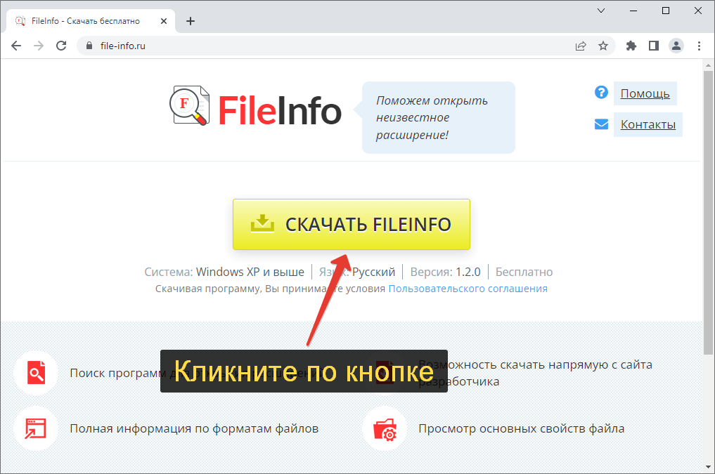 Нажать на кнопку «Скачать FileInfo». Это требуется сделать на странице загрузки софта.