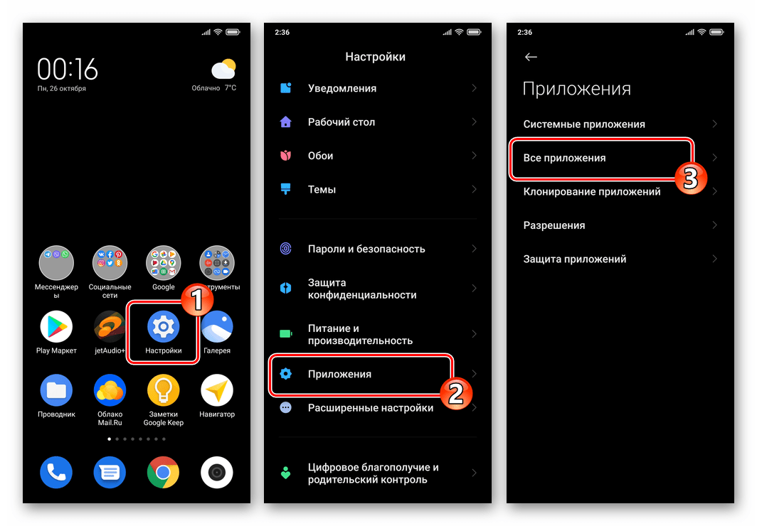 Откройте «Настройки» операционной системы Android, перейдите в «Приложения», нажмите «Все приложения».